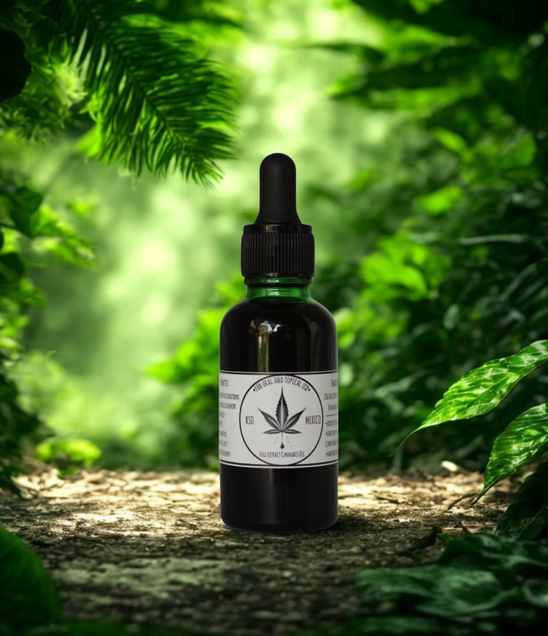 “RSO Mexico’s cannabis-infused MCT oil offers dual-purpose, used topically or orally. Crafted for versatility and potency, it’s your go-to for natural care.”