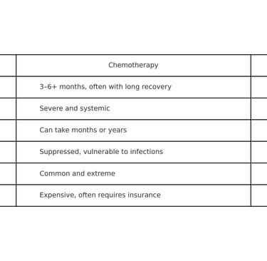 Chemotherapy is a systemic attack. While it can shrink tumors and kill cancer cells, it also targets healthy cells, wreaking havoc on the immune system and quality of life. Common side effects include: